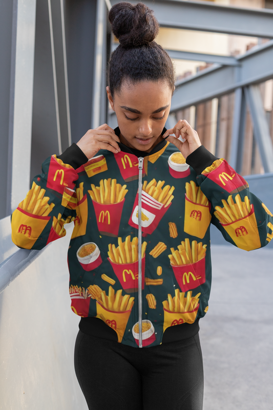 A Girl Who Loves Fries - Women's AOP Bomber Jacket